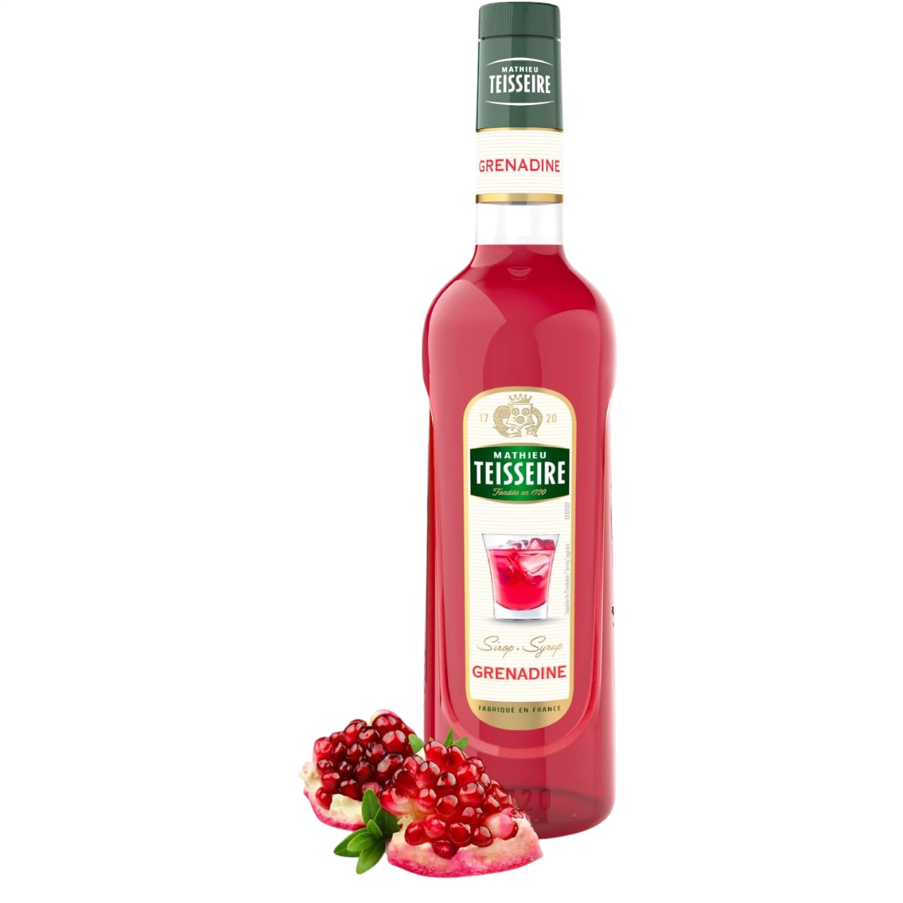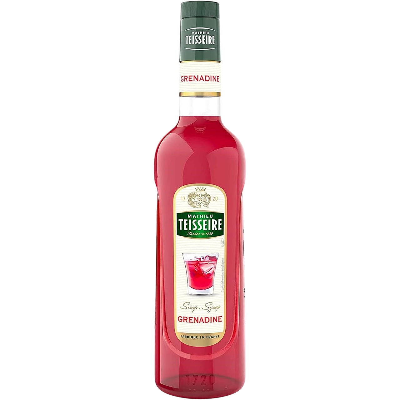 Mathieu Teisseire Grenadine — це популярний французький сироп з яскравим гранатовим смаком і насиченим рубіновим кольором. Обʼєм пляшки — 700 мл.